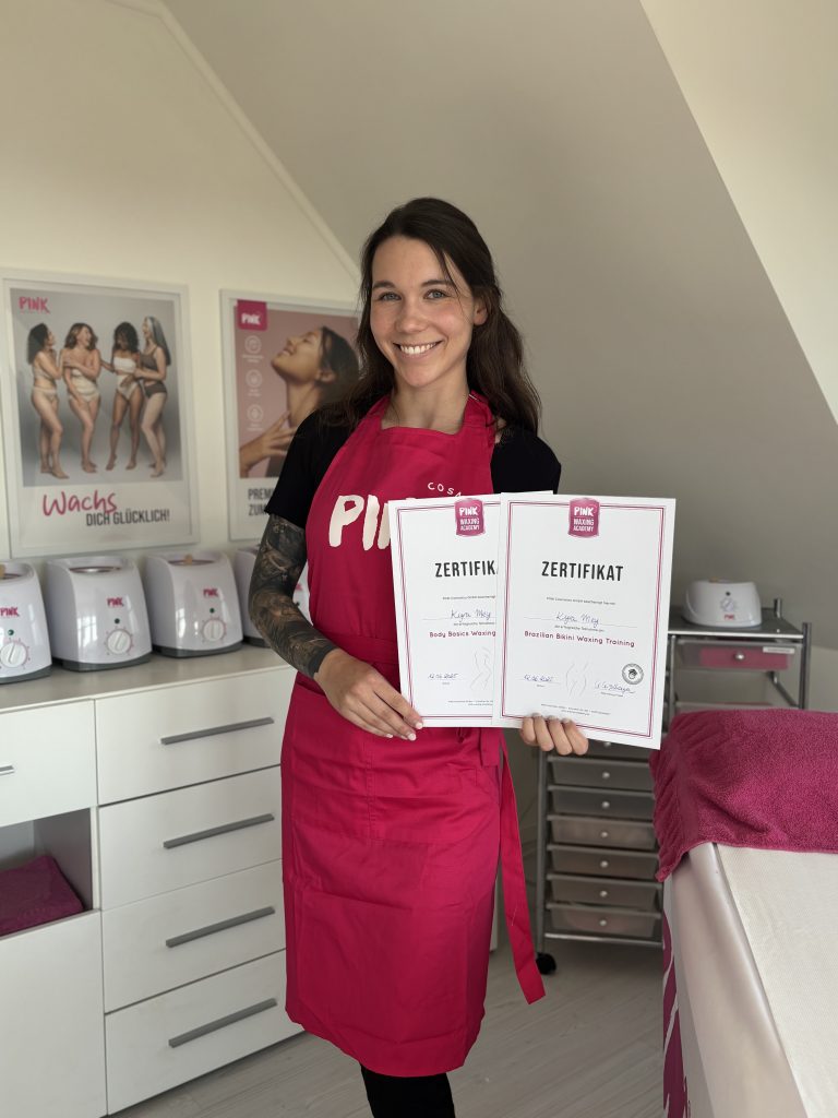 Ich bin Kyra, ausgebildete Drogistin und zertifizierte Waxing-Spezialistin durch Schulungen bei Pink Cosmetics.